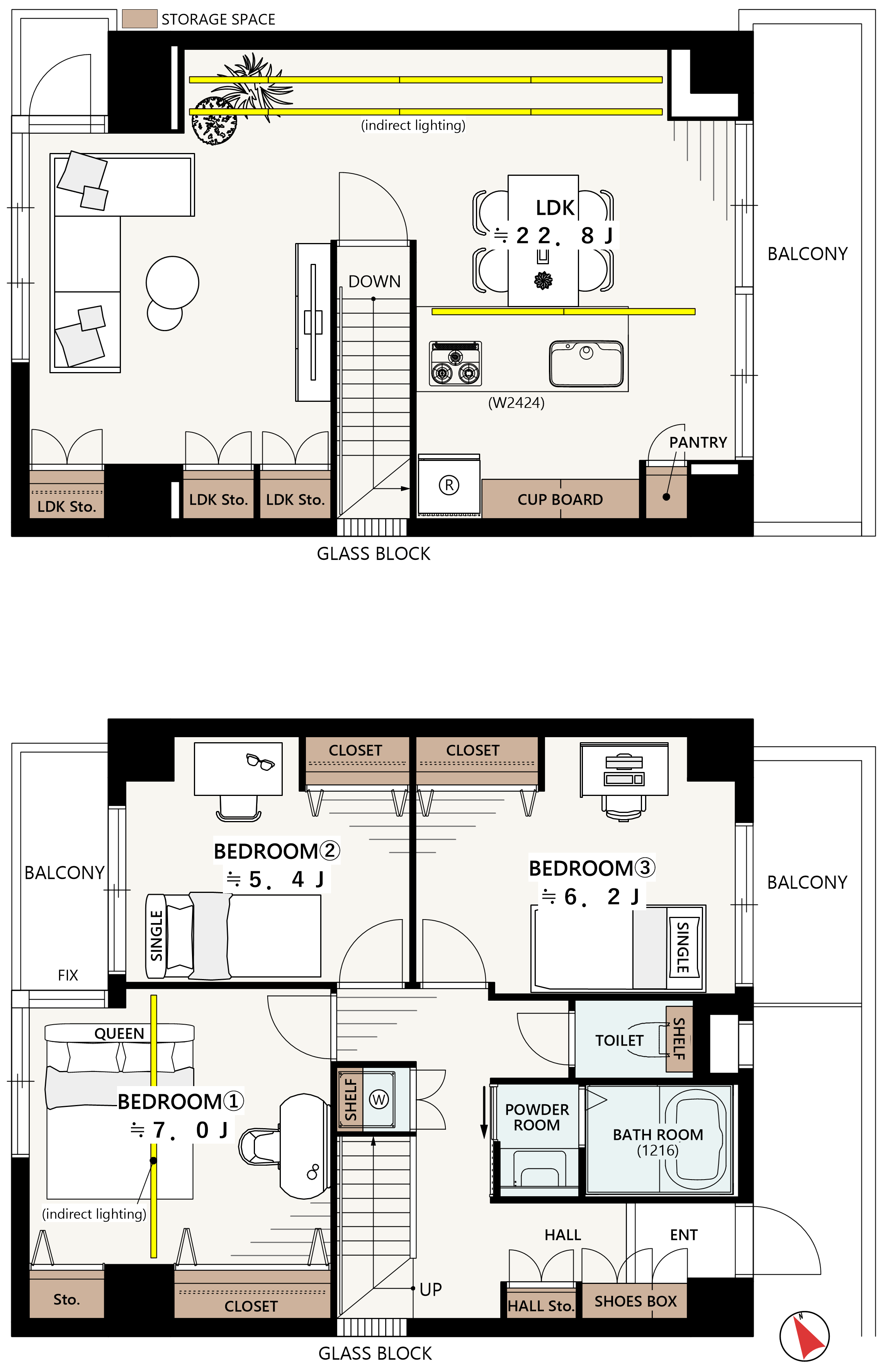 - 最上階メゾネットの特権: 12階・13階部分を専有するメゾネット設計。生活空間を上下階で分けることで、戸建てのような独立性と開放感を実現しました。最上階につき、上階の音に悩まされることもありません。